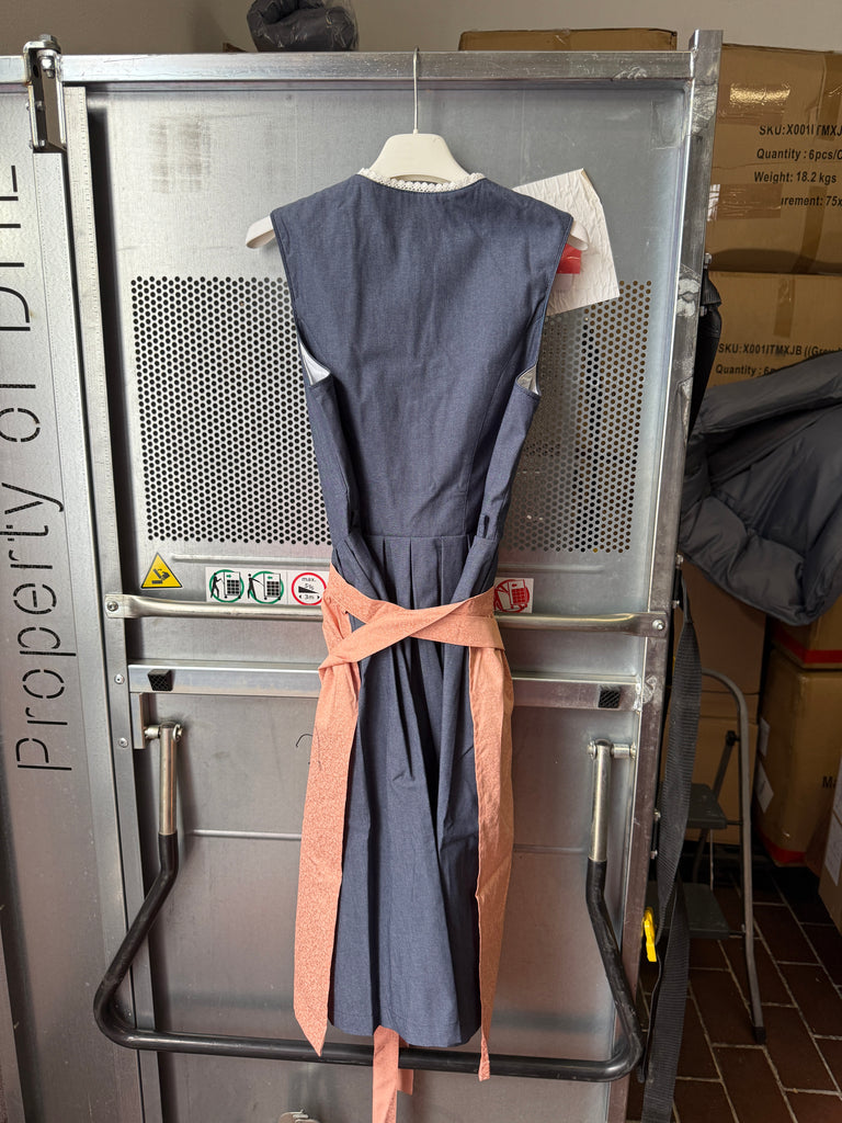 Das Dirndl Mercedes verbindet moderne Jeansoptik mit klassischer Tracht. Der schlichte Schnitt wird durch eine peachfarbene Baumwollschürze charmant ergänzt – ein stilvoller Look für jedes Volksfest.